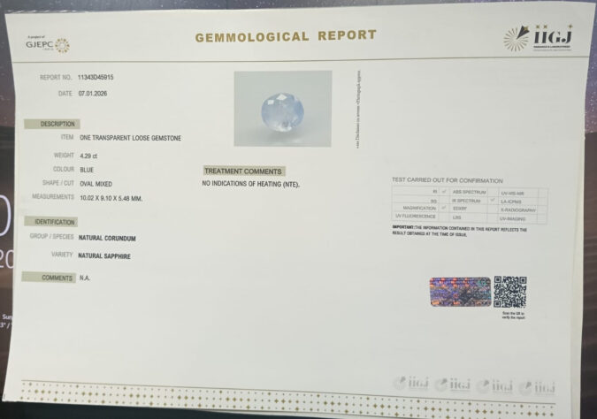 Beautiful 4.29 Cts Natural Blue Sapphire (AAA+-Mines) sva 4+ Ratti BLUE SAPPHIRE. Free Horoscope & Free Pundit Ji Astrological Advise / Consultation. Original Natural Lab certified gems by IGI GTL / Birth stones / Large Gem Selection of shree shubh Rashi Ratan Vedic dhan at Gem Mines. May Bhagwan Brahma, Vishnu, Shiv & Universe bless you.