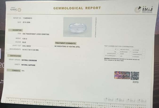 Beautiful 4.35 Cts Natural Blue Sapphire (AAA+-Mines) sva 4+ Ratti BLUE SAPPHIRE. Free Horoscope & Free Pundit Ji Astrological Advise / Consultation. Original Natural Lab certified gems by IGI GTL / Birth stones / Large Gem Selection of shree shubh Rashi Ratan Vedic dhan at Gem Mines. May Bhagwan Brahma, Vishnu, Shiv & Universe bless you.