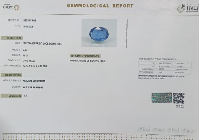 Beautiful 4.41 Cts Natural Blue Sapphire (Top++-Mines) sva 4+ Ratti BLUE SAPPHIRE. Free Horoscope & Free Pundit Ji Astrological Advise / Consultation. Original Natural Lab certified gems by IGI GTL / Birth stones / Large Gem Selection of shree shubh Rashi Ratan Vedic dhan at Gem Mines. May Bhagwan Brahma, Vishnu, Shiv & Universe bless you.