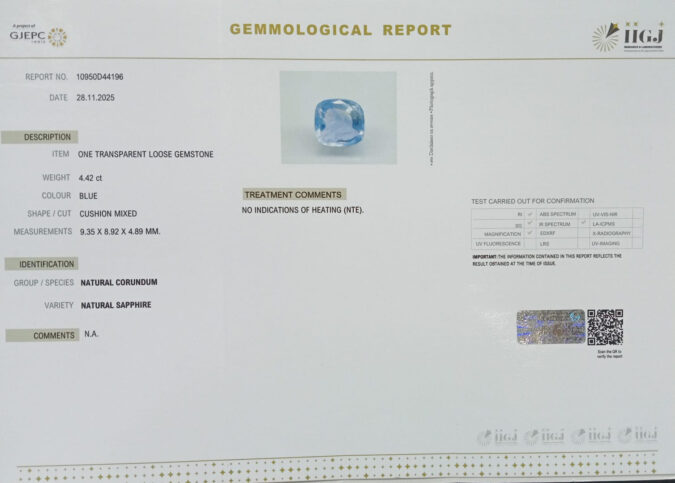 Beautiful 4.42 Cts Natural Blue Sapphire (Top-Mines) sva 4+ Ratti BLUE SAPPHIRE. Free Horoscope & Free Pundit Ji Astrological Advise / Consultation. Original Natural Lab certified gems by IGI GTL / Birth stones / Large Gem Selection of shree shubh Rashi Ratan Vedic dhan at Gem Mines. May Bhagwan Brahma, Vishnu, Shiv & Universe bless you.