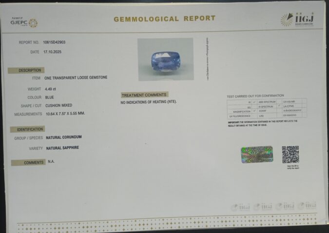 Beautiful 4.49 Cts NATURAL SAPPHIRE (Top+-Mines) sva 4+ Ratti BLUE SAPPHIRE. Free Horoscope & Free Pundit Ji Astrological Advise / Consultation. Original Natural Lab certified gems by IGI GTL / Birth stones / Large Gem Selection of shree shubh Rashi Ratan Vedic dhan at Gem Mines. May Bhagwan Brahma, Vishnu, Shiv & Universe bless you.