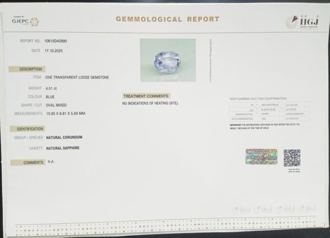 Beautiful 4.51 Cts NATURAL SAPPHIRE (Top++-Mines) sva 5+ Ratti BLUE SAPPHIRE. Free Horoscope & Free Pundit Ji Astrological Advise / Consultation. Original Natural Lab certified gems by IGI GTL / Birth stones / Large Gem Selection of shree shubh Rashi Ratan Vedic dhan at Gem Mines. May Bhagwan Brahma, Vishnu, Shiv & Universe bless you.