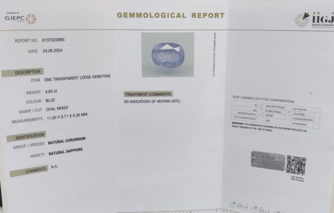 Beautiful 4.6 Ct. Natural Blue Sapphire (Top-Mines) sva 5+ Ratti Neelam. Free Horoscope & Free Pundit Ji Astrological Advise / Consultation. Original Natural Lab certified gems by IGI GTL / Birth stones / Large Gem Selection of shree shubh Rashi Ratan Vedic dhan at Gem Mines. May Bhagwan Brahma, Vishnu, Shiv & Universe bless you.