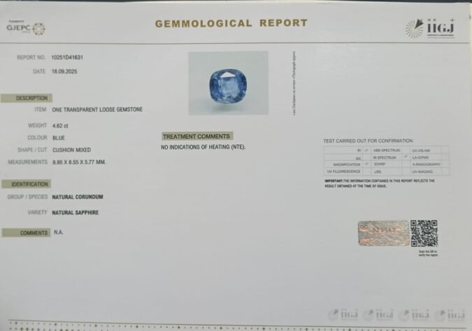 Beautiful 4.62 Cts Natural Blue Sapphire (Top++-Mines) sva 5+ Ratti BLUE SAPPHIRE. Free Horoscope & Free Pundit Ji Astrological Advise / Consultation. Original Natural Lab certified gems by IGI GTL / Birth stones / Large Gem Selection of shree shubh Rashi Ratan Vedic dhan at Gem Mines. May Bhagwan Brahma, Vishnu, Shiv & Universe bless you.