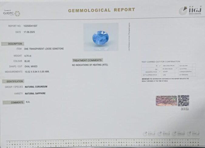 Beautiful 4.7 Cts Natural Blue Sapphire (AAA+-Mines) sva 5+ Ratti BLUE SAPPHIRE. Free Horoscope & Free Pundit Ji Astrological Advise / Consultation. Original Natural Lab certified gems by IGI GTL / Birth stones / Large Gem Selection of shree shubh Rashi Ratan Vedic dhan at Gem Mines. May Bhagwan Brahma, Vishnu, Shiv & Universe bless you.