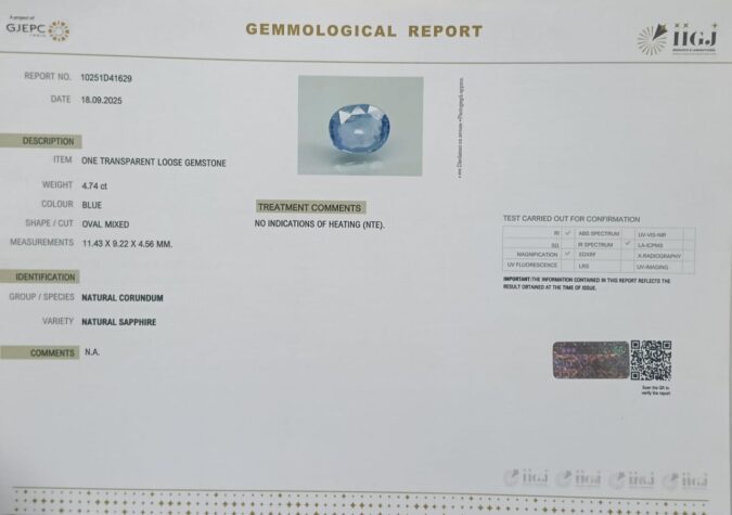 Beautiful 4.74 Cts Natural Blue Sapphire (Top+-Mines) sva 5+ Ratti BLUE SAPPHIRE. Free Horoscope & Free Pundit Ji Astrological Advise / Consultation. Original Natural Lab certified gems by IGI GTL / Birth stones / Large Gem Selection of shree shubh Rashi Ratan Vedic dhan at Gem Mines. May Bhagwan Brahma, Vishnu, Shiv & Universe bless you.
