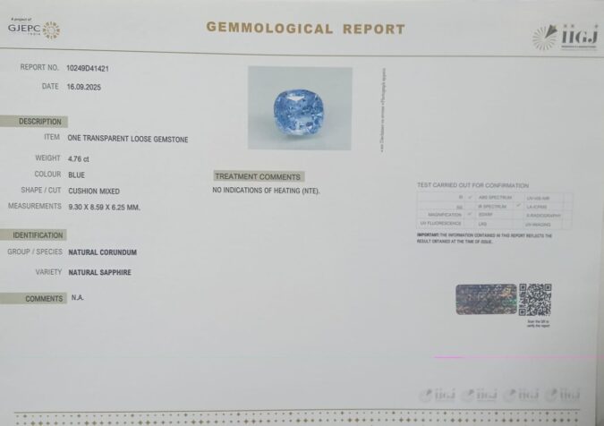 Beautiful 4.76 Cts Natural Blue Sapphire (Top-Mines) sva 5+ Ratti BLUE SAPPHIRE. Free Horoscope & Free Pundit Ji Astrological Advise / Consultation. Original Natural Lab certified gems by IGI GTL / Birth stones / Large Gem Selection of shree shubh Rashi Ratan Vedic dhan at Gem Mines. May Bhagwan Brahma, Vishnu, Shiv & Universe bless you.