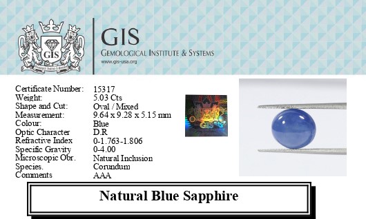 BLUE SAPPHIRE 5.03 Ct.