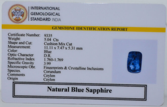 Beautiful 5.04 Cts Natural Blue Sapphire (AAA+-Mines) sva 5+ Ratti BLUE SAPPHIRE. Free Horoscope & Free Pundit Ji Astrological Advise / Consultation. Original Natural Lab certified gems by IGI GTL / Birth stones / Large Gem Selection of shree shubh Rashi Ratan Vedic dhan at Gem Mines. May Bhagwan Brahma, Vishnu, Shiv & Universe bless you.