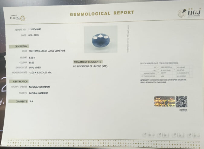 Beautiful 5.06 Cts Natural Blue Sapphire (AAA+-Mines) sva 5+ Ratti BLUE SAPPHIRE. Free Horoscope & Free Pundit Ji Astrological Advise / Consultation. Original Natural Lab certified gems by IGI GTL / Birth stones / Large Gem Selection of shree shubh Rashi Ratan Vedic dhan at Gem Mines. May Bhagwan Brahma, Vishnu, Shiv & Universe bless you.