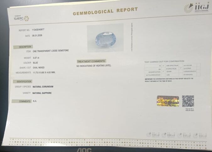 Beautiful 5.07 Cts Natural Blue Sapphire (Top-Mines) sva 5+ Ratti BLUE SAPPHIRE. Free Horoscope & Free Pundit Ji Astrological Advise / Consultation. Original Natural Lab certified gems by IGI GTL / Birth stones / Large Gem Selection of shree shubh Rashi Ratan Vedic dhan at Gem Mines. May Bhagwan Brahma, Vishnu, Shiv & Universe bless you.