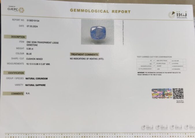 Beautiful 5.08 Ct. Natural Blue Sapphire (AAA+-Mines) sva 5+ Ratti Neelam. Free Horoscope & Free Pundit Ji Astrological Advise / Consultation. Original Natural Lab certified gems by IGI GTL / Birth stones / Large Gem Selection of shree shubh Rashi Ratan Vedic dhan at Gem Mines. May Bhagwan Brahma, Vishnu, Shiv & Universe bless you.