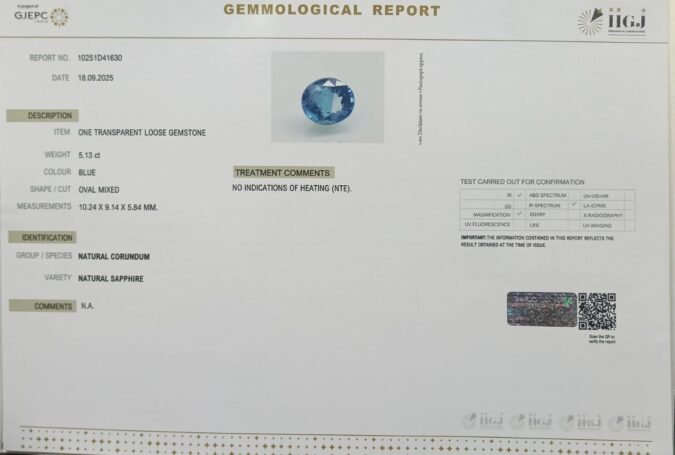 Beautiful 5.13 Cts Natural Blue Sapphire (Top++-Mines) sva 5+ Ratti BLUE SAPPHIRE. Free Horoscope & Free Pundit Ji Astrological Advise / Consultation. Original Natural Lab certified gems by IGI GTL / Birth stones / Large Gem Selection of shree shubh Rashi Ratan Vedic dhan at Gem Mines. May Bhagwan Brahma, Vishnu, Shiv & Universe bless you.