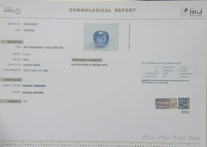 Beautiful 5.13 Cts Natural Blue Sapphire (Top+-Mines) sva 5+ Ratti BLUE SAPPHIRE. Free Horoscope & Free Pundit Ji Astrological Advise / Consultation. Original Natural Lab certified gems by IGI GTL / Birth stones / Large Gem Selection of shree shubh Rashi Ratan Vedic dhan at Gem Mines. May Bhagwan Brahma, Vishnu, Shiv & Universe bless you.