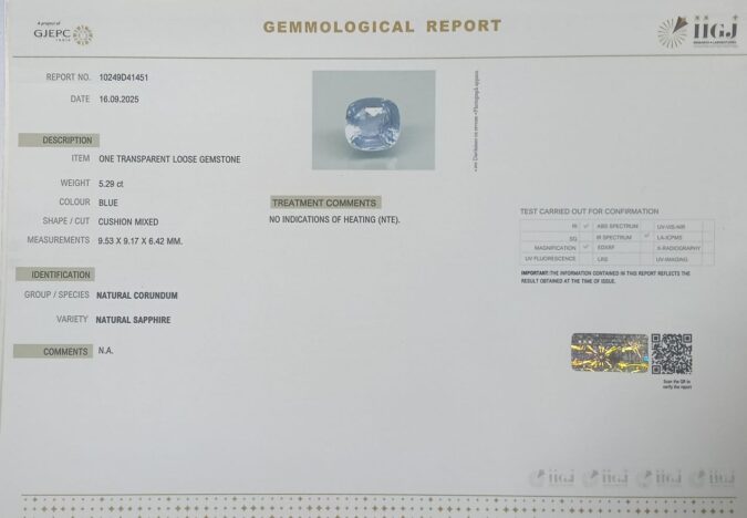 Beautiful 5.29 Cts Natural Blue Sapphire (Top+-Mines) sva 5+ Ratti BLUE SAPPHIRE. Free Horoscope & Free Pundit Ji Astrological Advise / Consultation. Original Natural Lab certified gems by IGI GTL / Birth stones / Large Gem Selection of shree shubh Rashi Ratan Vedic dhan at Gem Mines. May Bhagwan Brahma, Vishnu, Shiv & Universe bless you.