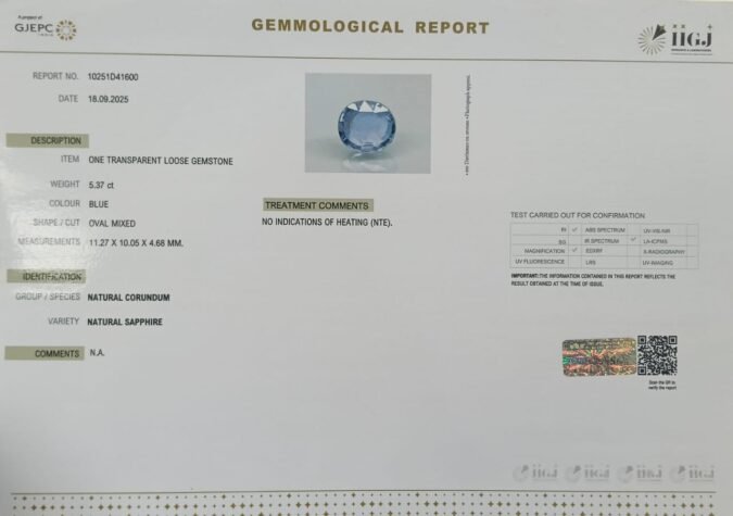 Beautiful 5.37 Cts Natural Blue Sapphire (Top++-Mines) sva 5+ Ratti BLUE SAPPHIRE. Free Horoscope & Free Pundit Ji Astrological Advise / Consultation. Original Natural Lab certified gems by IGI GTL / Birth stones / Large Gem Selection of shree shubh Rashi Ratan Vedic dhan at Gem Mines. May Bhagwan Brahma, Vishnu, Shiv & Universe bless you.