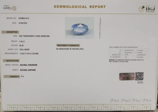Beautiful 5.4 Cts Natural Blue Sapphire (Top-Mines) sva 6+ Ratti BLUE SAPPHIRE. Free Horoscope & Free Pundit Ji Astrological Advise / Consultation. Original Natural Lab certified gems by IGI GTL / Birth stones / Large Gem Selection of shree shubh Rashi Ratan Vedic dhan at Gem Mines. May Bhagwan Brahma, Vishnu, Shiv & Universe bless you.