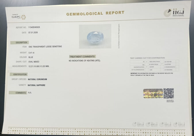 Beautiful 5.41 Cts Natural Blue Sapphire (AAA+-Mines) sva 6+ Ratti BLUE SAPPHIRE. Free Horoscope & Free Pundit Ji Astrological Advise / Consultation. Original Natural Lab certified gems by IGI GTL / Birth stones / Large Gem Selection of shree shubh Rashi Ratan Vedic dhan at Gem Mines. May Bhagwan Brahma, Vishnu, Shiv & Universe bless you.