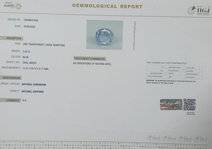 Beautiful 5.42 Cts Natural Blue Sapphire (Top-Mines) sva 6+ Ratti BLUE SAPPHIRE. Free Horoscope & Free Pundit Ji Astrological Advise / Consultation. Original Natural Lab certified gems by IGI GTL / Birth stones / Large Gem Selection of shree shubh Rashi Ratan Vedic dhan at Gem Mines. May Bhagwan Brahma, Vishnu, Shiv & Universe bless you.