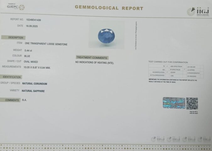 Beautiful 5.44 Cts Natural Blue Sapphire (Top++-Mines) sva 6+ Ratti BLUE SAPPHIRE. Free Horoscope & Free Pundit Ji Astrological Advise / Consultation. Original Natural Lab certified gems by IGI GTL / Birth stones / Large Gem Selection of shree shubh Rashi Ratan Vedic dhan at Gem Mines. May Bhagwan Brahma, Vishnu, Shiv & Universe bless you.