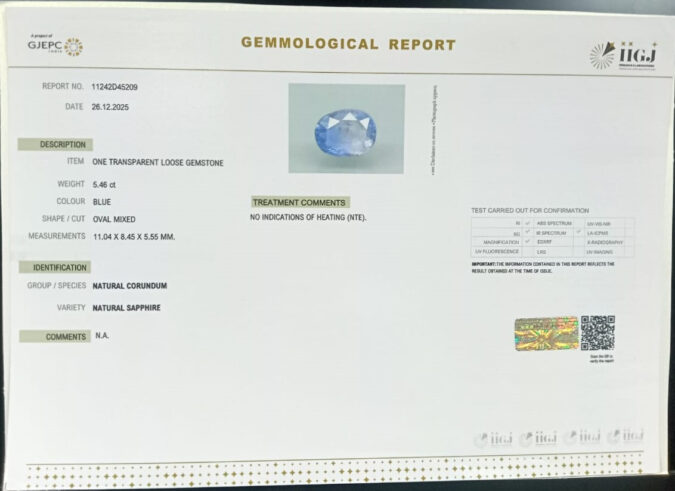 Beautiful 5.46 Cts Natural Blue Sapphire (Top+-Mines) sva 6+ Ratti BLUE SAPPHIRE. Free Horoscope & Free Pundit Ji Astrological Advise / Consultation. Original Natural Lab certified gems by IGI GTL / Birth stones / Large Gem Selection of shree shubh Rashi Ratan Vedic dhan at Gem Mines. May Bhagwan Brahma, Vishnu, Shiv & Universe bless you.