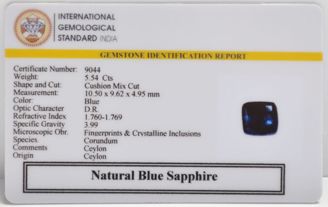 Beautiful 5.54 Cts Natural Blue Sapphire (Good-Mines) sva 6+ Ratti BLUE SAPPHIRE. Free Horoscope & Free Pundit Ji Astrological Advise / Consultation. Original Natural Lab certified gems by IGI GTL / Birth stones / Large Gem Selection of shree shubh Rashi Ratan Vedic dhan at Gem Mines. May Bhagwan Brahma, Vishnu, Shiv & Universe bless you.