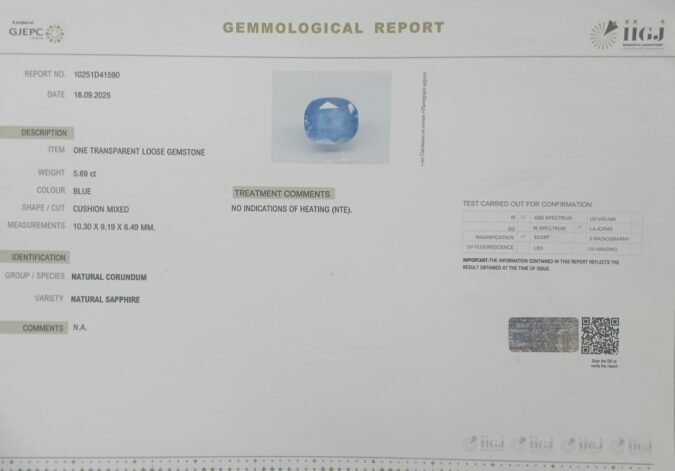 Beautiful 5.69 Cts Natural Blue Sapphire (Top-Mines) sva 6+ Ratti BLUE SAPPHIRE. Free Horoscope & Free Pundit Ji Astrological Advise / Consultation. Original Natural Lab certified gems by IGI GTL / Birth stones / Large Gem Selection of shree shubh Rashi Ratan Vedic dhan at Gem Mines. May Bhagwan Brahma, Vishnu, Shiv & Universe bless you.