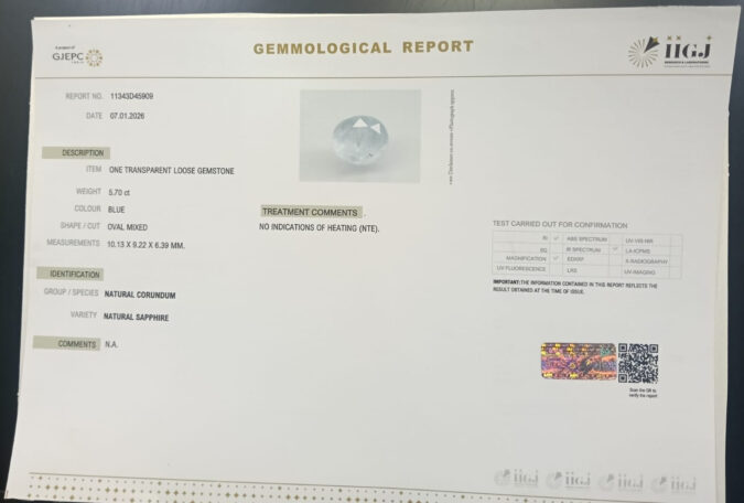 Beautiful 5.7 Cts Natural Blue Sapphire (AAA+-Mines) sva 6+ Ratti BLUE SAPPHIRE. Free Horoscope & Free Pundit Ji Astrological Advise / Consultation. Original Natural Lab certified gems by IGI GTL / Birth stones / Large Gem Selection of shree shubh Rashi Ratan Vedic dhan at Gem Mines. May Bhagwan Brahma, Vishnu, Shiv & Universe bless you.