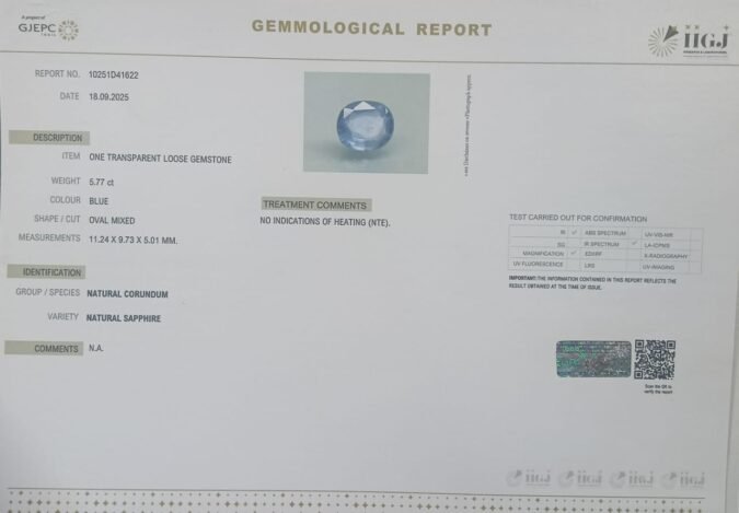 Beautiful 5.77 Cts Natural Blue Sapphire (Top-Mines) sva 6+ Ratti BLUE SAPPHIRE. Free Horoscope & Free Pundit Ji Astrological Advise / Consultation. Original Natural Lab certified gems by IGI GTL / Birth stones / Large Gem Selection of shree shubh Rashi Ratan Vedic dhan at Gem Mines. May Bhagwan Brahma, Vishnu, Shiv & Universe bless you.