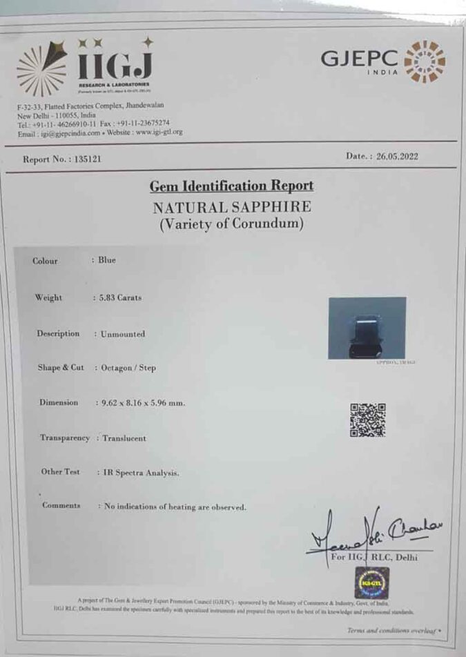 Beautiful 5.83 Ct. Blue Sapphire (Ceylon Mines) Sava 6 Ratti Neelam. Free Horoscope & Free Pundit Ji Advise / Consultation. Original Natural Lab certified gems by IGI GTL / Birth stones / Large Gem Selection of shree shubh Rashi Ratan Vedic dhan at Gem Mines. May Bhagwan Brahma, Vishnu, Shiv & Universe bless you.