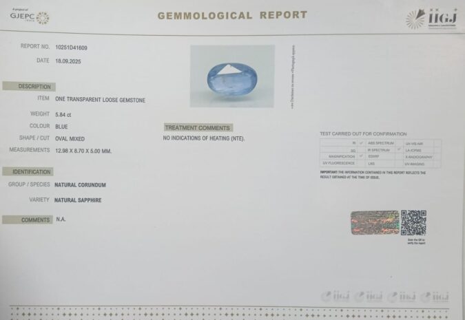 Beautiful 5.84 Cts Natural Blue Sapphire (Top++-Mines) sva 6+ Ratti BLUE SAPPHIRE. Free Horoscope & Free Pundit Ji Astrological Advise / Consultation. Original Natural Lab certified gems by IGI GTL / Birth stones / Large Gem Selection of shree shubh Rashi Ratan Vedic dhan at Gem Mines. May Bhagwan Brahma, Vishnu, Shiv & Universe bless you.