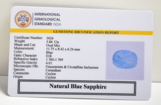 Beautiful 5.84 Cts Natural Blue Sapphire (AAA+-Mines) sva 6+ Ratti BLUE SAPPHIRE. Free Horoscope & Free Pundit Ji Astrological Advise / Consultation. Original Natural Lab certified gems by IGI GTL / Birth stones / Large Gem Selection of shree shubh Rashi Ratan Vedic dhan at Gem Mines. May Bhagwan Brahma, Vishnu, Shiv & Universe bless you.