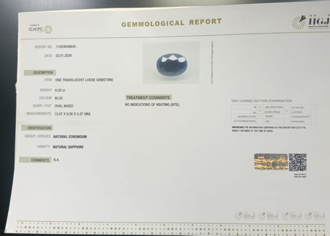 Beautiful 6.2 Cts Natural Blue Sapphire (AAA+-Mines) sva 6+ Ratti BLUE SAPPHIRE. Free Horoscope & Free Pundit Ji Astrological Advise / Consultation. Original Natural Lab certified gems by IGI GTL / Birth stones / Large Gem Selection of shree shubh Rashi Ratan Vedic dhan at Gem Mines. May Bhagwan Brahma, Vishnu, Shiv & Universe bless you.