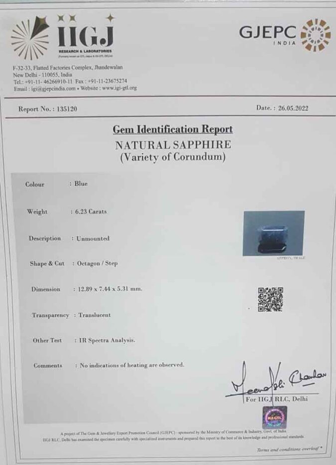 Beautiful 6.23 Ct. Blue Sapphire (Ceylon Mines) Sava 6 Ratti Neelam. Free Horoscope & Free Pundit Ji Advise / Consultation. Original Natural Lab certified gems by IGI GTL / Birth stones / Large Gem Selection of shree shubh Rashi Ratan Vedic dhan at Gem Mines. May Bhagwan Brahma, Vishnu, Shiv & Universe bless you.