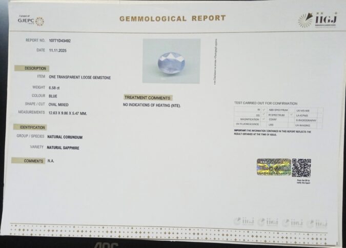 Beautiful 6.58 Cts NATURAL SAPPHIRE (AAA+-Mines) sva 7+ Ratti BLUE SAPPHIRE. Free Horoscope & Free Pundit Ji Astrological Advise / Consultation. Original Natural Lab certified gems by IGI GTL / Birth stones / Large Gem Selection of shree shubh Rashi Ratan Vedic dhan at Gem Mines. May Bhagwan Brahma, Vishnu, Shiv & Universe bless you.