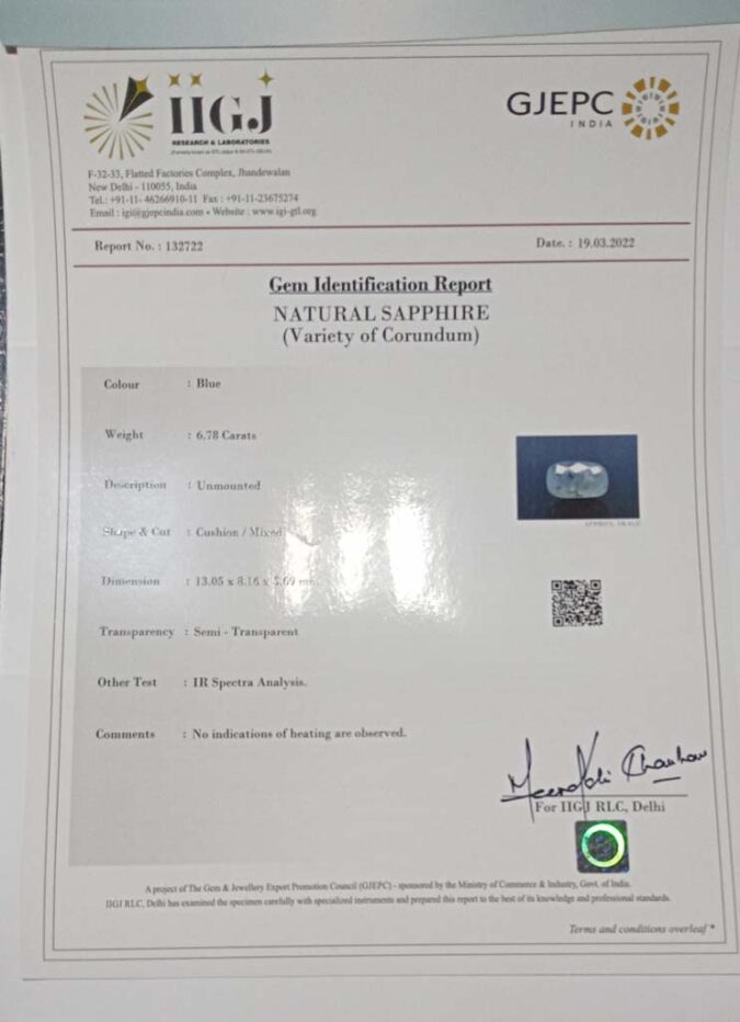 Beautiful 6.78 Ct. Blue Sapphire (Ceylon (Sri Lanka) Mines) Sava 7 Ratti Neelam. Free Horoscope & Free Pundit Ji Advise / Consultation. Original Natural Lab certified gems by IGI GTL / Birth stones / Large Gem Selection of shree shubh Rashi Ratan Vedic dhan at Gem Mines. May Bhagwan Brahma, Vishnu, Shiv & Universe bless you.