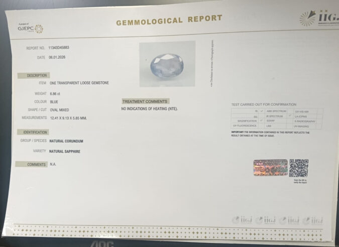 Beautiful 6.86 Cts Natural Blue Sapphire (AAA+-Mines) sva 7+ Ratti BLUE SAPPHIRE. Free Horoscope & Free Pundit Ji Astrological Advise / Consultation. Original Natural Lab certified gems by IGI GTL / Birth stones / Large Gem Selection of shree shubh Rashi Ratan Vedic dhan at Gem Mines. May Bhagwan Brahma, Vishnu, Shiv & Universe bless you.