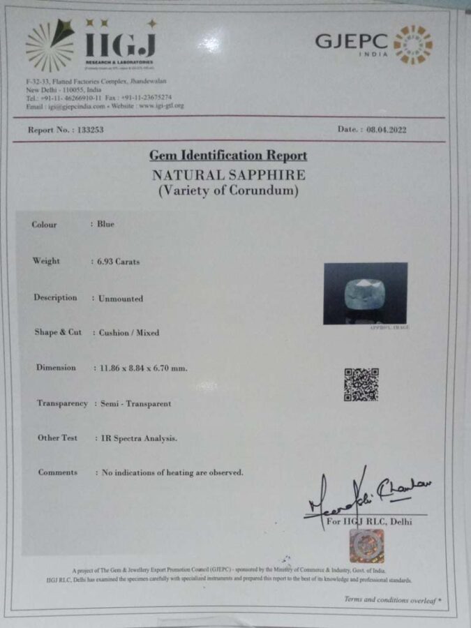 Beautiful 6.93 Ct. Blue Sapphire (Ceylon Mines) Sava 7 Ratti Neelam. Free Horoscope & Free Pundit Ji Advise / Consultation. Original Natural Lab certified gems by IGI GTL / Birth stones / Large Gem Selection of shree shubh Rashi Ratan Vedic dhan at Gem Mines. May Bhagwan Brahma, Vishnu, Shiv & Universe bless you.