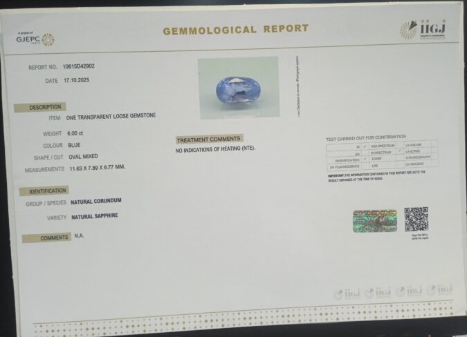 Beautiful 6 Cts NATURAL SAPPHIRE (Top+-Mines) sva 6+ Ratti BLUE SAPPHIRE. Free Horoscope & Free Pundit Ji Astrological Advise / Consultation. Original Natural Lab certified gems by IGI GTL / Birth stones / Large Gem Selection of shree shubh Rashi Ratan Vedic dhan at Gem Mines. May Bhagwan Brahma, Vishnu, Shiv & Universe bless you.