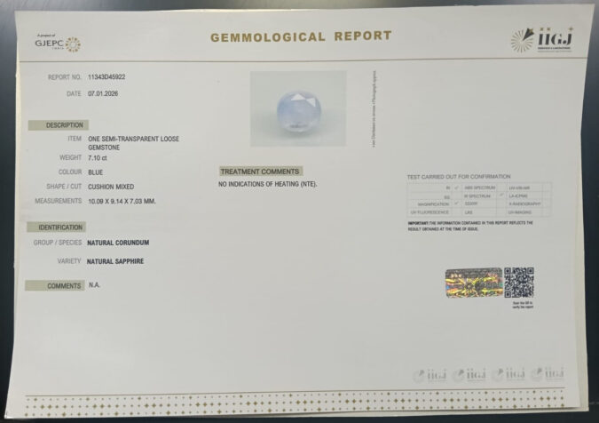 Beautiful 7.1 Cts Natural Blue Sapphire (AAA+-Mines) sva 7+ Ratti BLUE SAPPHIRE. Free Horoscope & Free Pundit Ji Astrological Advise / Consultation. Original Natural Lab certified gems by IGI GTL / Birth stones / Large Gem Selection of shree shubh Rashi Ratan Vedic dhan at Gem Mines. May Bhagwan Brahma, Vishnu, Shiv & Universe bless you.