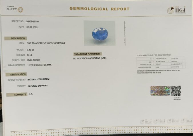 Beautiful 7.1 Cts Natural Blue Sapphire (Top-Mines) sva 7+ Ratti BLUE SAPPHIRE. Free Horoscope & Free Pundit Ji Astrological Advise / Consultation. Original Natural Lab certified gems by IGI GTL / Birth stones / Large Gem Selection of shree shubh Rashi Ratan Vedic dhan at Gem Mines. May Bhagwan Brahma, Vishnu, Shiv & Universe bless you.