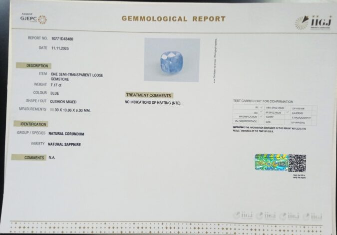 Beautiful 7.17 Cts NATURAL SAPPHIRE (AAA+-Mines) sva 7+ Ratti BLUE SAPPHIRE. Free Horoscope & Free Pundit Ji Astrological Advise / Consultation. Original Natural Lab certified gems by IGI GTL / Birth stones / Large Gem Selection of shree shubh Rashi Ratan Vedic dhan at Gem Mines. May Bhagwan Brahma, Vishnu, Shiv & Universe bless you.