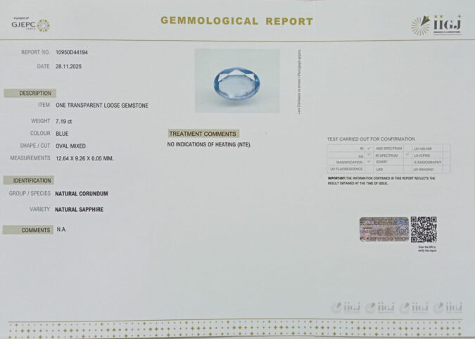 Beautiful 7.19 Cts Natural Blue Sapphire (Unique+-Mines) sva 7+ Ratti BLUE SAPPHIRE. Free Horoscope & Free Pundit Ji Astrological Advise / Consultation. Original Natural Lab certified gems by IGI GTL / Birth stones / Large Gem Selection of shree shubh Rashi Ratan Vedic dhan at Gem Mines. May Bhagwan Brahma, Vishnu, Shiv & Universe bless you.