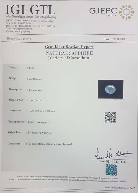 Beautiful 7.32 Ct. Blue Sapphire (Ceylon Mines) Sava 8 Ratti Neelam. Free Horoscope & Free Pundit Ji Advise / Consultation. Original Natural Lab certified gems by IGI GTL / Birth stones / Large Gem Selection of shree shubh Rashi Ratan Vedic dhan at Gem Mines. May Bhagwan Brahma, Vishnu, Shiv & Universe bless you.