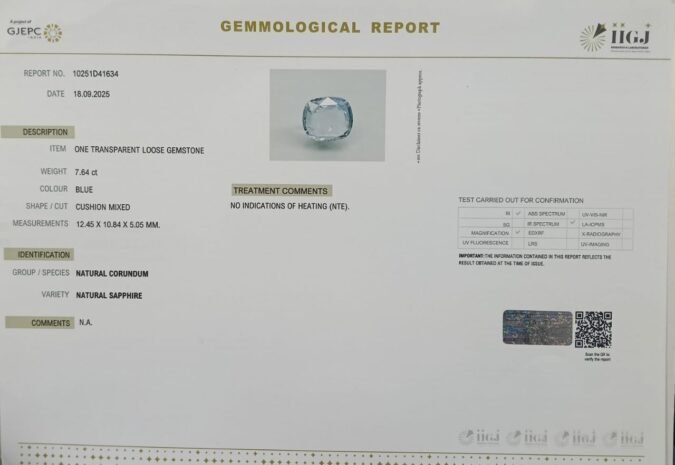 Beautiful 7.64 Cts Natural Blue Sapphire (Top++-Mines) sva 8+ Ratti BLUE SAPPHIRE. Free Horoscope & Free Pundit Ji Astrological Advise / Consultation. Original Natural Lab certified gems by IGI GTL / Birth stones / Large Gem Selection of shree shubh Rashi Ratan Vedic dhan at Gem Mines. May Bhagwan Brahma, Vishnu, Shiv & Universe bless you.