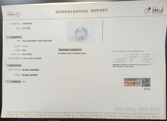 Beautiful 7.71 Cts Natural Blue Sapphire (AAA+-Mines) sva 8+ Ratti BLUE SAPPHIRE. Free Horoscope & Free Pundit Ji Astrological Advise / Consultation. Original Natural Lab certified gems by IGI GTL / Birth stones / Large Gem Selection of shree shubh Rashi Ratan Vedic dhan at Gem Mines. May Bhagwan Brahma, Vishnu, Shiv & Universe bless you.