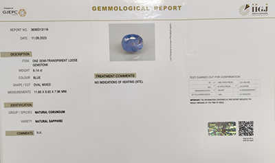 Beautiful 8.14 Ct. Natural Blue Sapphire (AAA+-Mines) sva 9+ Ratti Neelam. Free Horoscope & Free Pundit Ji Astrological Advise / Consultation. Original Natural Lab certified gems by IGI GTL / Birth stones / Large Gem Selection of shree shubh Rashi Ratan Vedic dhan at Gem Mines. May Bhagwan Brahma, Vishnu, Shiv & Universe bless you.