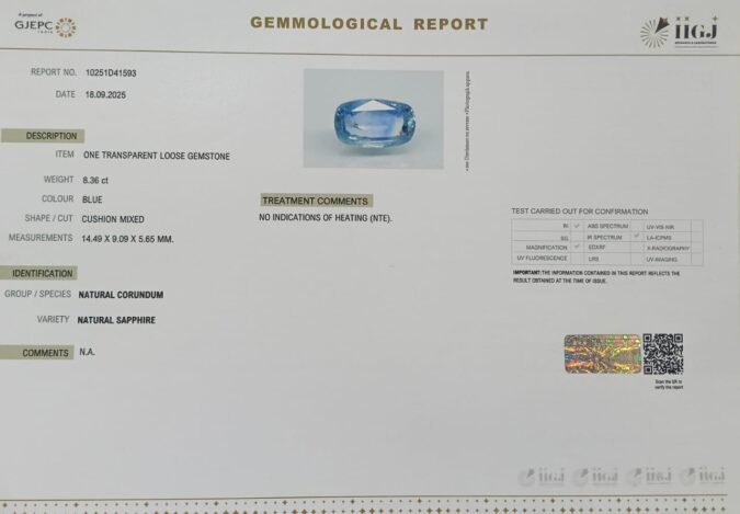 Beautiful 8.36 Cts Natural Blue Sapphire (Top++-Mines) sva 9+ Ratti BLUE SAPPHIRE. Free Horoscope & Free Pundit Ji Astrological Advise / Consultation. Original Natural Lab certified gems by IGI GTL / Birth stones / Large Gem Selection of shree shubh Rashi Ratan Vedic dhan at Gem Mines. May Bhagwan Brahma, Vishnu, Shiv & Universe bless you.