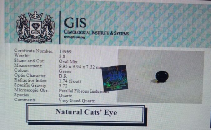 Beautiful 3.8 Ct. Cat’s Eye (Quartz Mines) Sava 4 Ratti Lehsunia. Free Horoscope & Free Pundit Ji Advise / Consultation. Original Natural Lab certified gems by IGI GTL / Birth stones / Large Gem Selection of shree shubh Rashi Ratan Vedic dhan at Gem Mines. May Bhagwan Brahma, Vishnu, Shiv & Universe bless you.