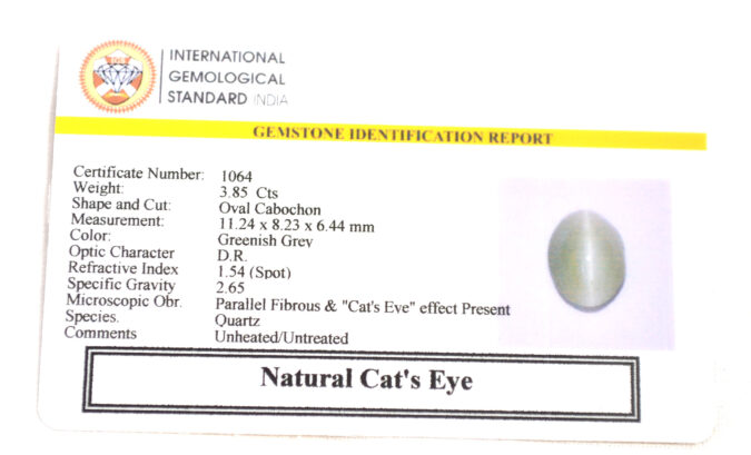 Beautiful 3.85 Cts Natural Cat’s Eye (AAA+Mines) sva 4 Ratti CATS EYE. Free Horoscope & Free Pundit Ji Astrological Advise / Consultation. Original Natural Lab certified gems by IGI GTL / Birth stones / Large Gem Selection of shree shubh Rashi Ratan Vedic dhan at Gem Mines. May Bhagwan Brahma, Vishnu, Shiv & Universe bless you.